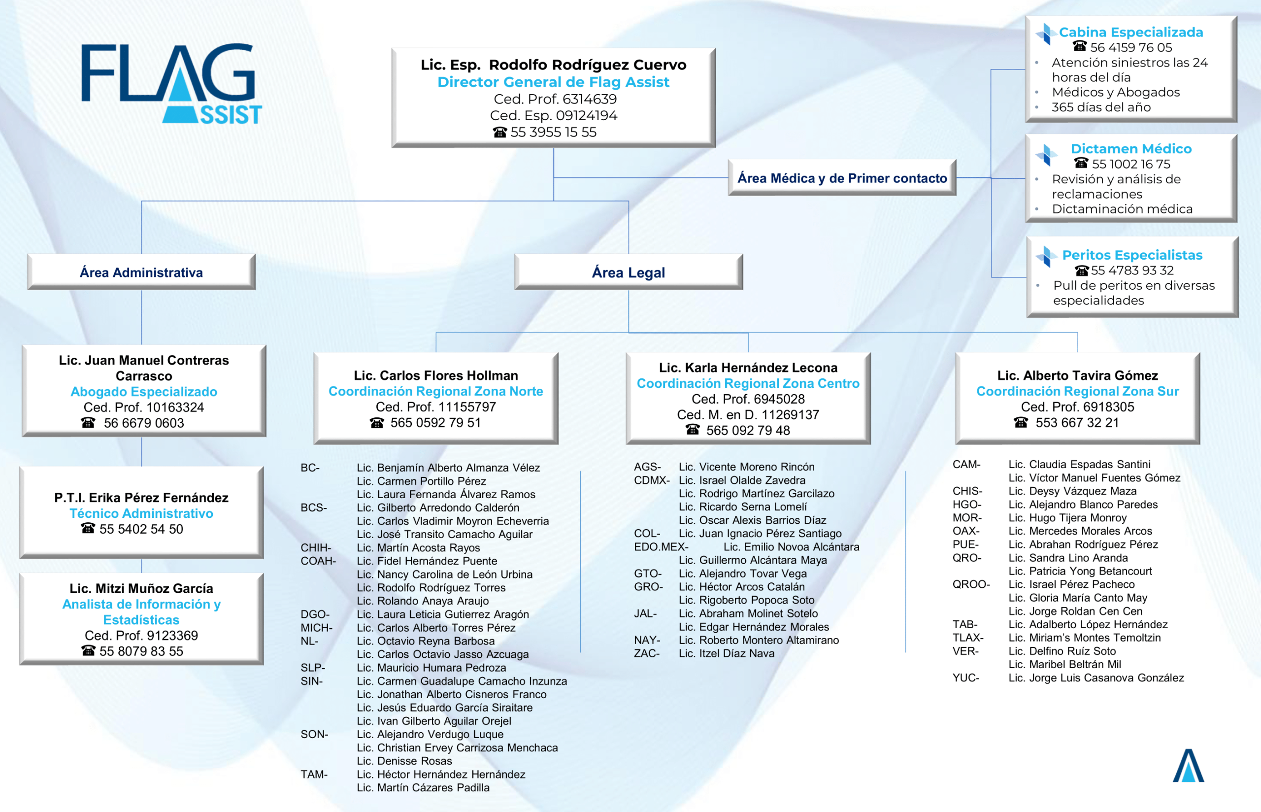 Proporciona atención inicial con personal médico y legal para primera atención 24/7.